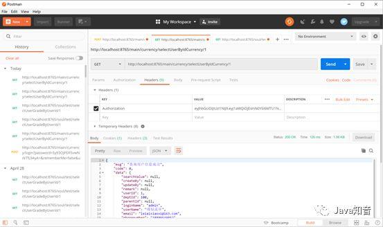 特别提示:我的auth工程端口是8766,登录认证接口路由是/currency/login。而此时我请求的认证接口是/main/currency/login,端口是8765,我们在文章开头就已说明,gateway网关在yml文件中配置auth代理为auth/,和这里的main是同一个道理。