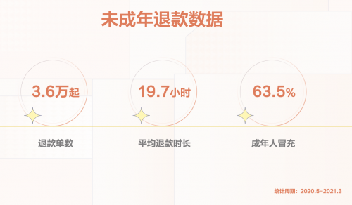 抖音放面披露的数据显示,目前抖音未成年人退款的平均时间仅需19.7小时。2020年5月至2021年3月,抖音直播共为3.6万个用户办理了未成年人打赏退款。