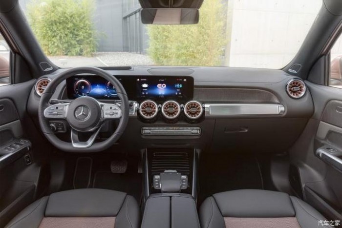 这款车内饰与奔驰GLB也颇为类似,新车采用了全液晶仪表盘与中控屏相连接的双联屏设计,科技感有一定保证。此外,新车还搭配了三辐式多功能方向盘以及怀挡设计,以及标志性的圆形空调出风口,内饰整体质感颇具豪华性。