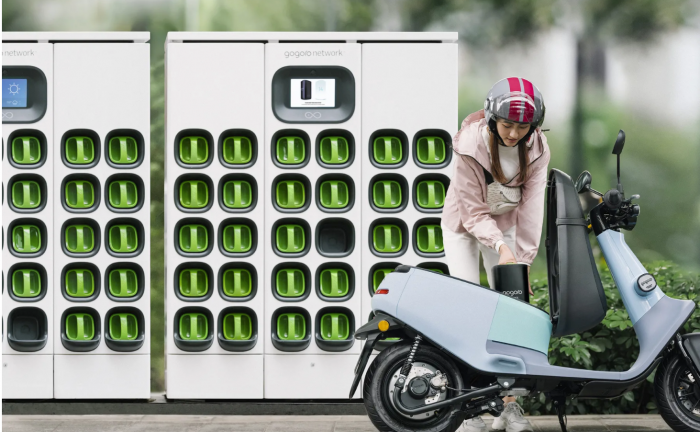 对于踏板车,尤其是由Gogoro制造的踏板车,则是一个不同的故事,Gogoro是由一对前HTC高管在十年前创立的。首先,电动踏板车更小,耗电更少。Gogoro的踏板车由可更换的电池提供动力,车主可以在典型的自动售货机大小的公共站点放下和取走电池。