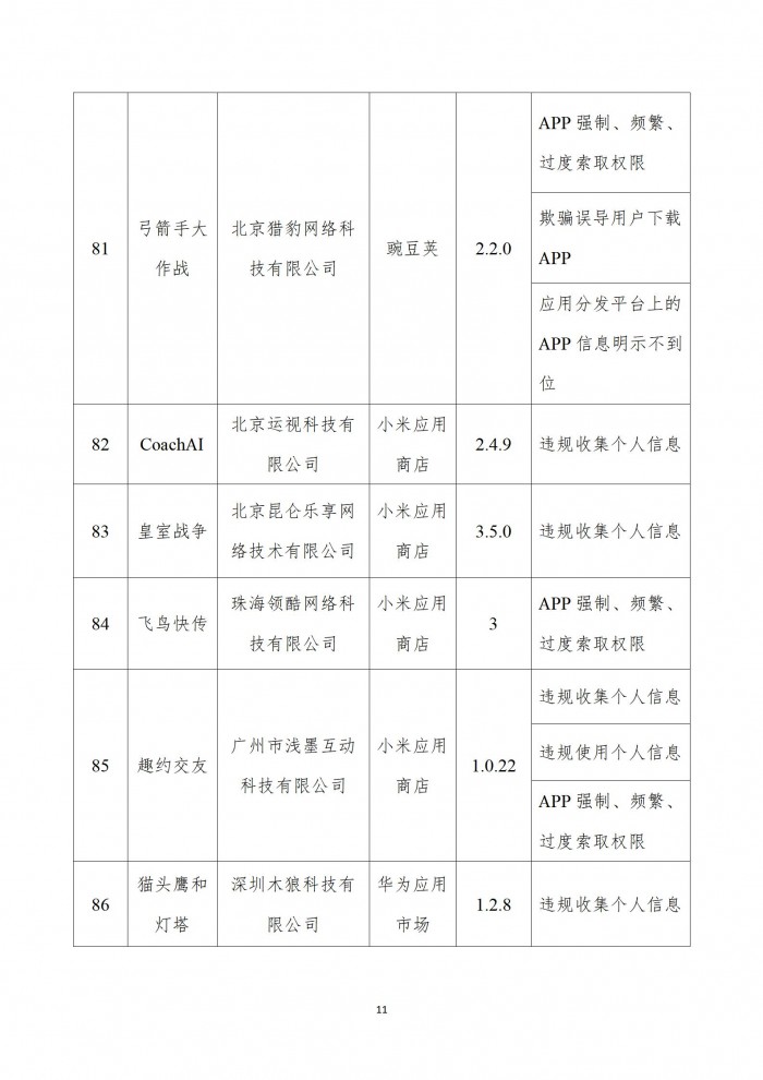 广东省通信管理局通报存在问题的应用软件名单: