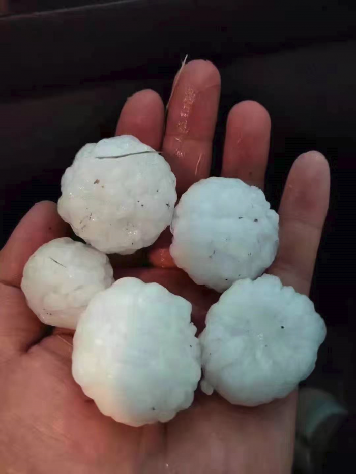 4月30日18时至22时,江苏南通市部分地区出现冰雹和大范围强雷暴大风天气,全市自动站最大风力超过10级的站点有66个,其中通州湾三友集团达到45.4m/s(14级强风)、海门包场镇达到39.0m/s、海门东灶港达到38.2 m/s、通州环本农场达到37.9 m/s、启东东元滩涂达到37.7 m/s;海安城东镇和大公镇、通州十总镇、如东阳光岛等地出现直径1~3厘米的冰雹。