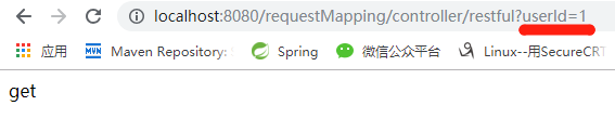 /** * value: 参数名 * required: 是否request中必须包含此参数,默认是true。 * defaultValue: 默认参数值 */ @RequestMapping(value = "/restful", method = RequestMethod.GET) public String get(@RequestParam(value = "userId", required = false, defaultValue = "0") String id) { System.out.println("id:" + id); return "get"; } 3.3 @PathVariable路径参数