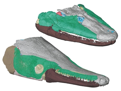 提塔利克鱼(上)与鳄鱼(下)具有相似的嘴部,可能暗示其具有相同的进食策略。图片来源:芝加哥大学网站