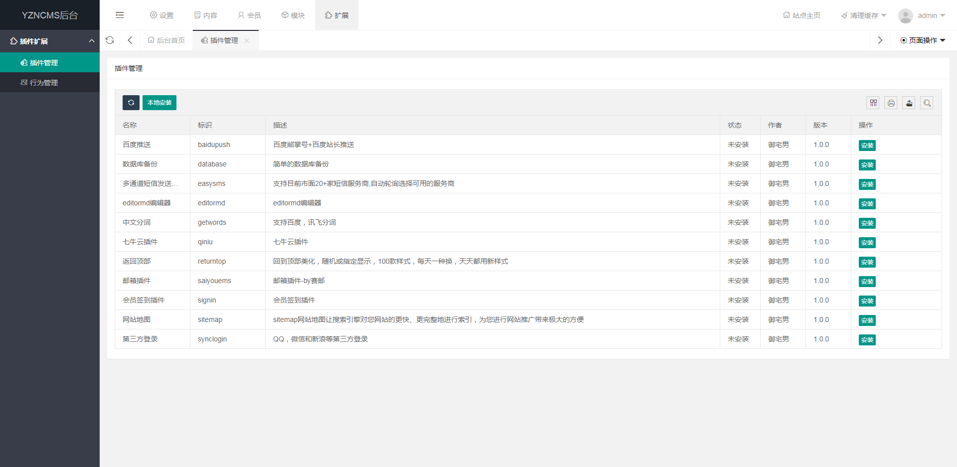 - URL重写: https://www.kancloud.cn/ken678/yzncms/1003231