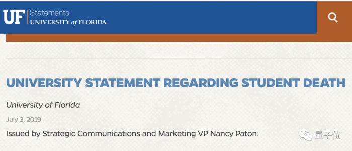 2019年6月13日,佛罗里达大学在读博士生Huixiang Chen自杀身亡。