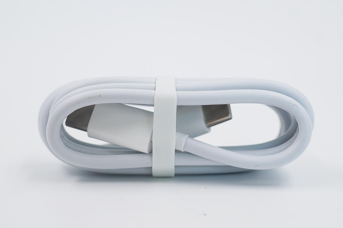 小米33W充电器在包装内同样附带线材,使用橡胶扎带规整的捆扎起来,接头规格为 USB-C to USB-C。线材端到端的长度约为106cm,使用POWER-Z KM001C未读取到线材的emarker信息参数。通过测试得知,附送的这条USB-C线支持60W最大充电功率,可满足手机、平板、笔记本电脑等日常充电使用。