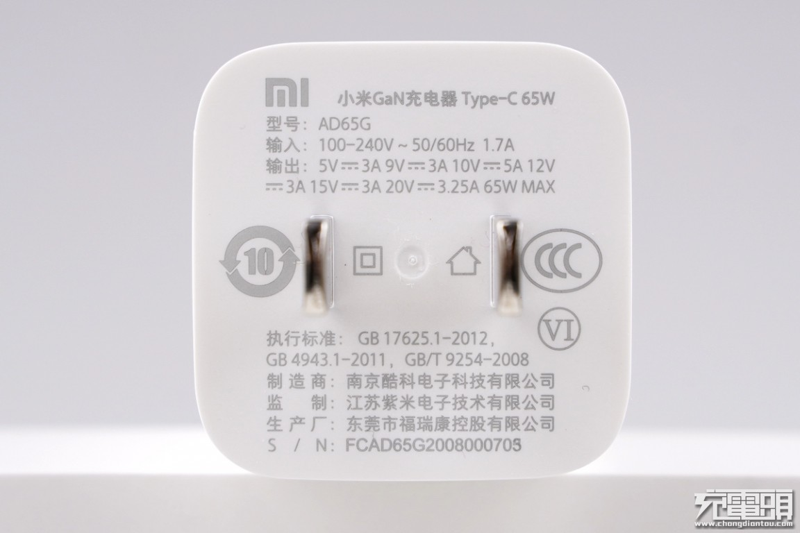 55W采用USB-A接口,靠侧边设计,橘红色胶芯。A口母座正负极弹片加宽,有一个特殊触点实现PD输出。自小米9手机以来,每代标配的充电器都进行了魔改,小米似乎也很乐意去打造魔改充电器生态,至于这条道路未来如何,有待时间考验。