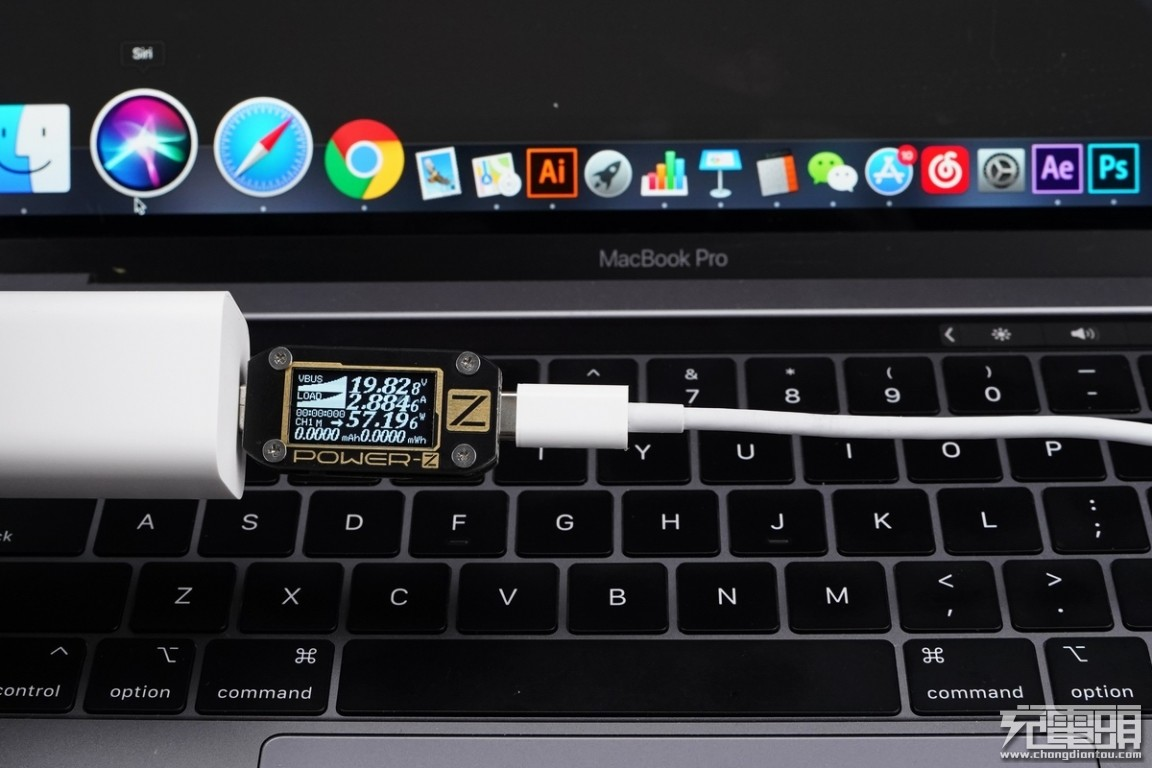 使用小米65W氮化镓充电器为13寸的MacBook Pro充电,功率达到57W左右,确实给力。