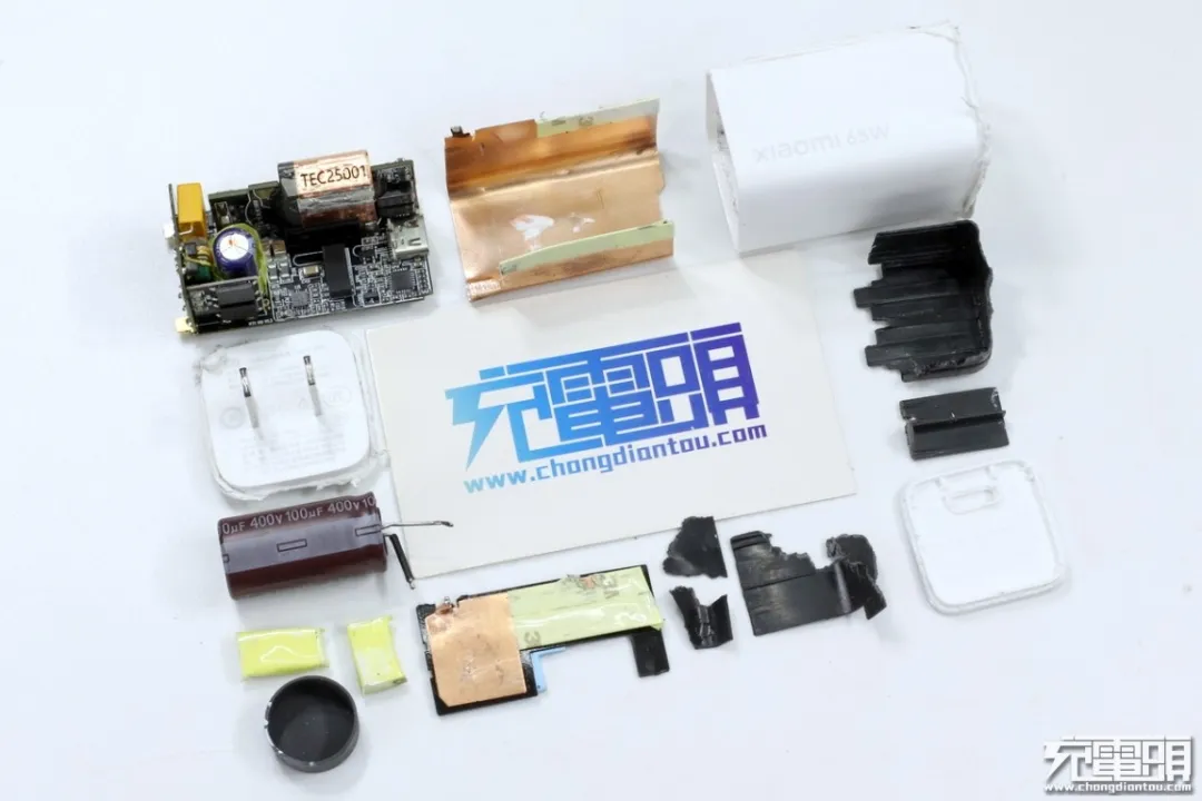 散热方面,充电器内部的功率器件及变压器部分均增加导热垫设计,整个PCBA模块外围使用铜板包裹,起到均匀散热的作用。整个产品用料扎实,做工精细,堪称充电器中的精品。