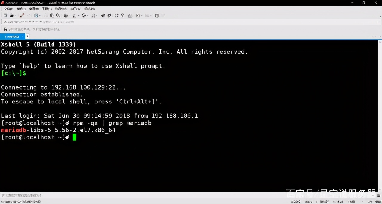 第六步:通过 rpm -e mariadb-libs-5.5.56-2.el7.x86_64 --nodeps 命令装卸 mariadb