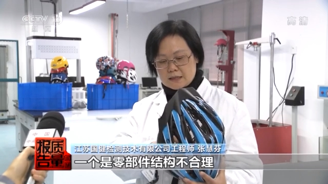 江苏国健检测技术有限公司工程师 苏鹤群:一些头盔生产企业,其实是运动器材产品的生产企业,或者是其他类塑料制品的生产企业。他们为了节约生产成本,在加工工艺上有所欠缺。另外他们利用消费者很难从外观上辨别这个产品质量的好坏,那么将产品质量不过关的产品在网络渠道进行销售,导致网络渠道的产品的不合格率一直居高不下。